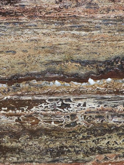 Un travertino de personalidad vibrante, con tonos rojizos intensos y matices cafés que evocan la calidez del fuego y la tierra. Sus vetas rojizas dan vida a espacios llenos de energía, sin perder elegancia. Ideal en formato grande para destacar muros o pisos protagonistas.